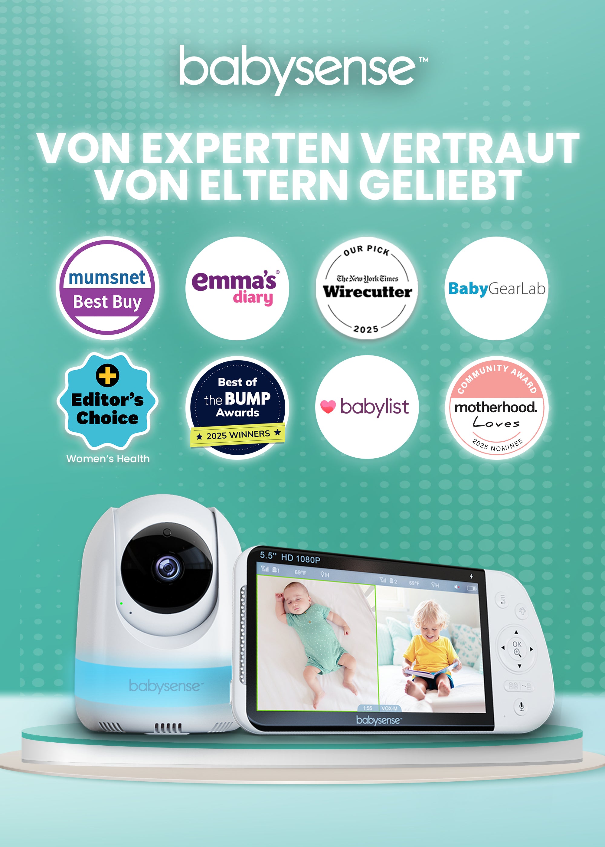 Dank der hervorragenden Qualität, dem hochauflösenden Videobildschirm und der Möglichkeit, bis zu vier Kameras zu verbinden, haben wir das Babysense 5,5” 1080p Full HD Split-Screen Babyphone als Testsieger in unserer Liste der besten Babyphones ausgewählt.