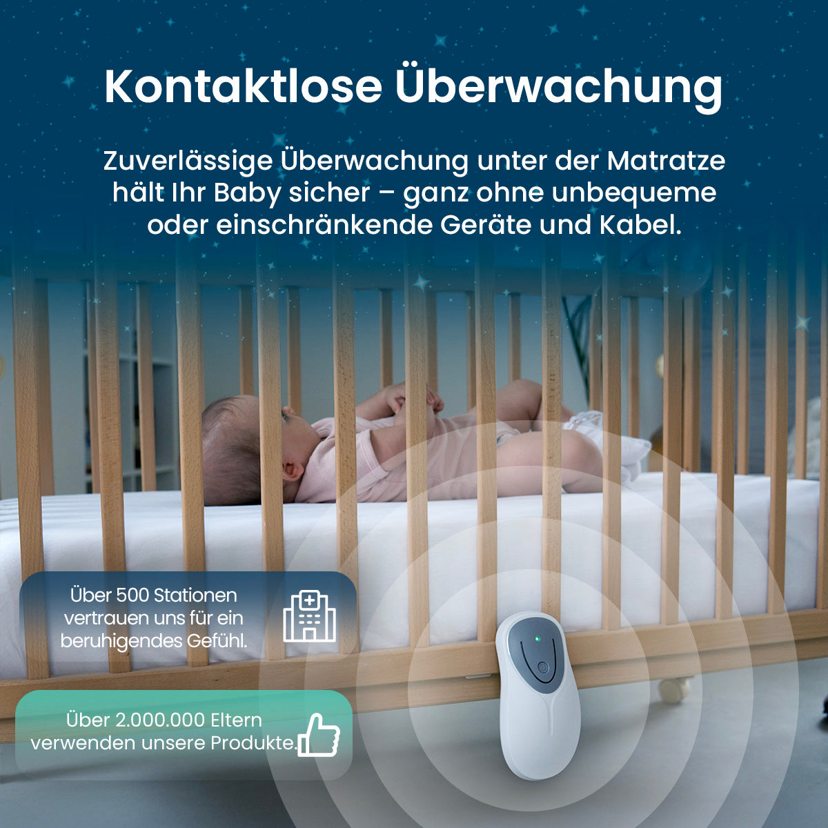 Die absolut sichere Überwachung unter der Matratze hält Ihr Baby frei von unbequemen tragbaren Geräten und Kabeln