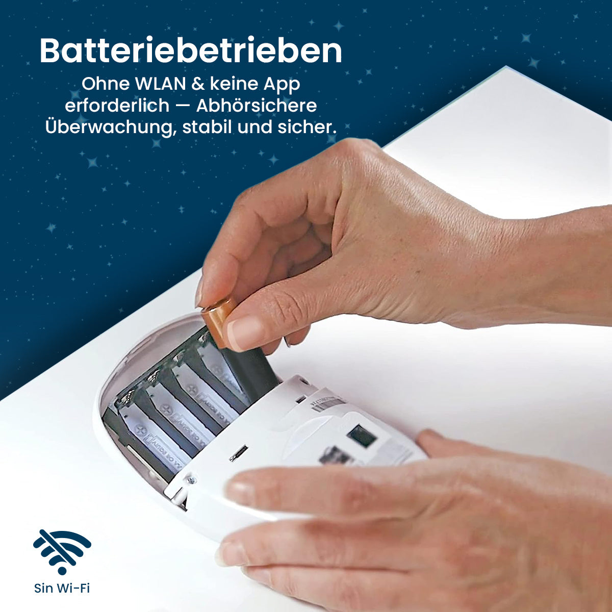 Unser Atemmonitor unter der Matratze wird mit normalen AA-Batterien betrieben, sodass keine gefährlichen Netzkabel vorhanden sind. Es verfügt außerdem über ein Konzept zur „versteckten Kabelinstallation“, um die Kabel außer Sicht- und Reichweite zu halten. Das passive Sensorsystem ist absolut sicher, gibt keine Strahlung ab und hat keinen direkten Kontakt zum Baby.