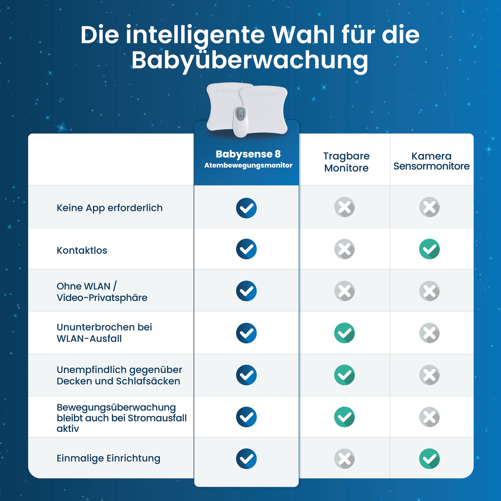Babysense 8 Baby-Atemmonitor – Echtzeit-Warnungen bei Atemaussetzern und Unregelmäßigkeiten, Medizinisch Zertifiziert, Rundum-Überwachung für Sicheren Schlaf