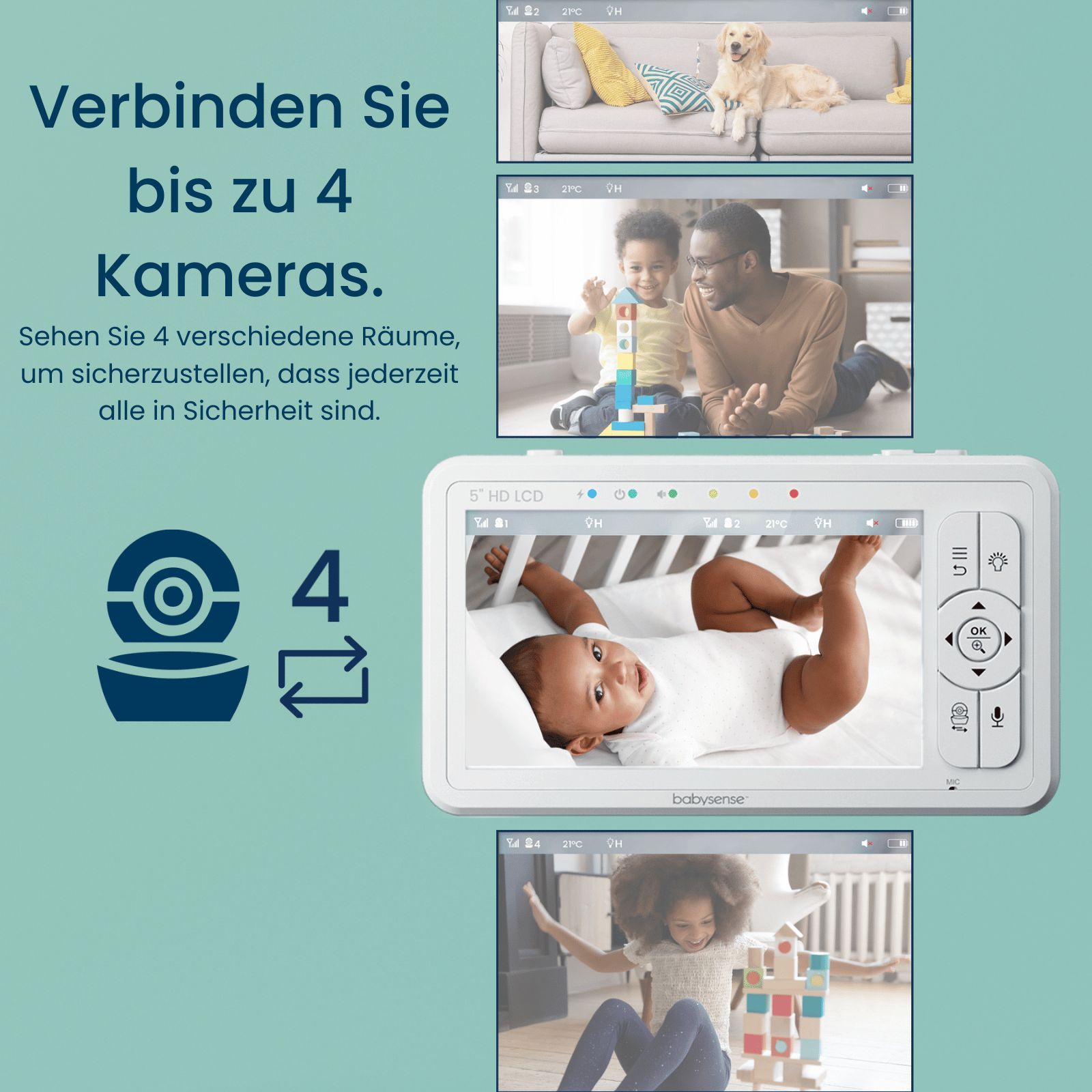 Babysense HD S2: Babyphone Mit 3 kameras, Ohne Wlan, Geteilte Bildschirm & Nachtlicht
