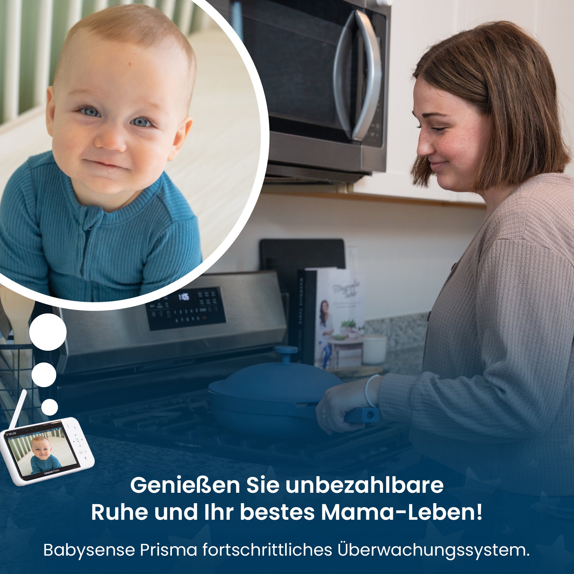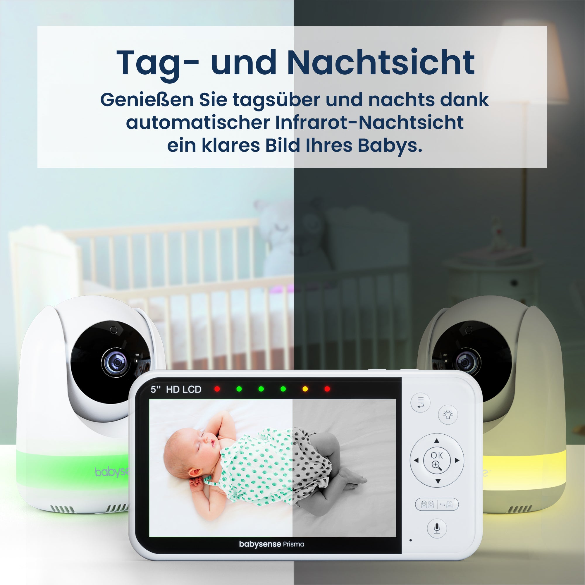 Babysense Prisma: Video-Babyphone mit 2 Kameras, ohne WLAN, Split-Screen, Nachtlicht & Soundmaschine