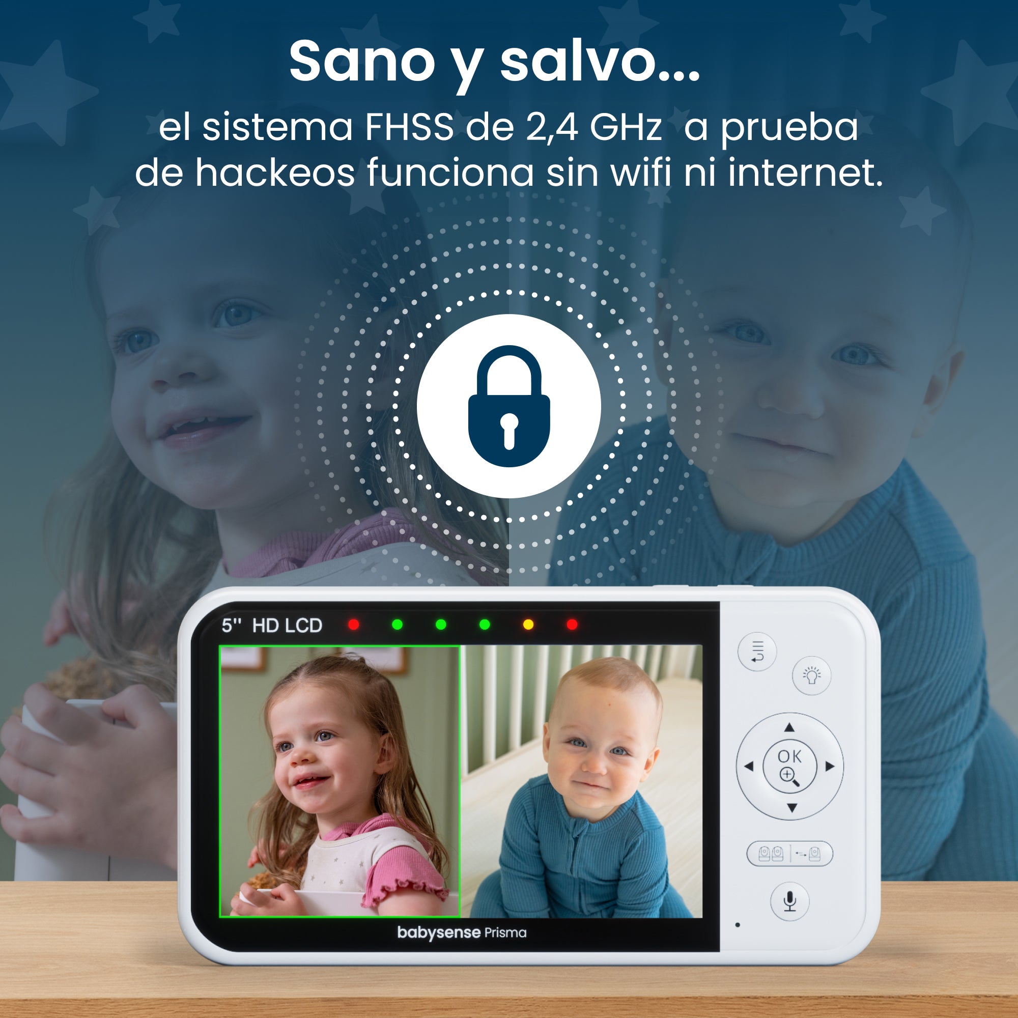 Babysense Prisma: Monitor de Bebé con Vídeo y 1 Cámara, Sin WiFi, Pantalla Dividida, Luz Nocturna y Máquina de Sonidos