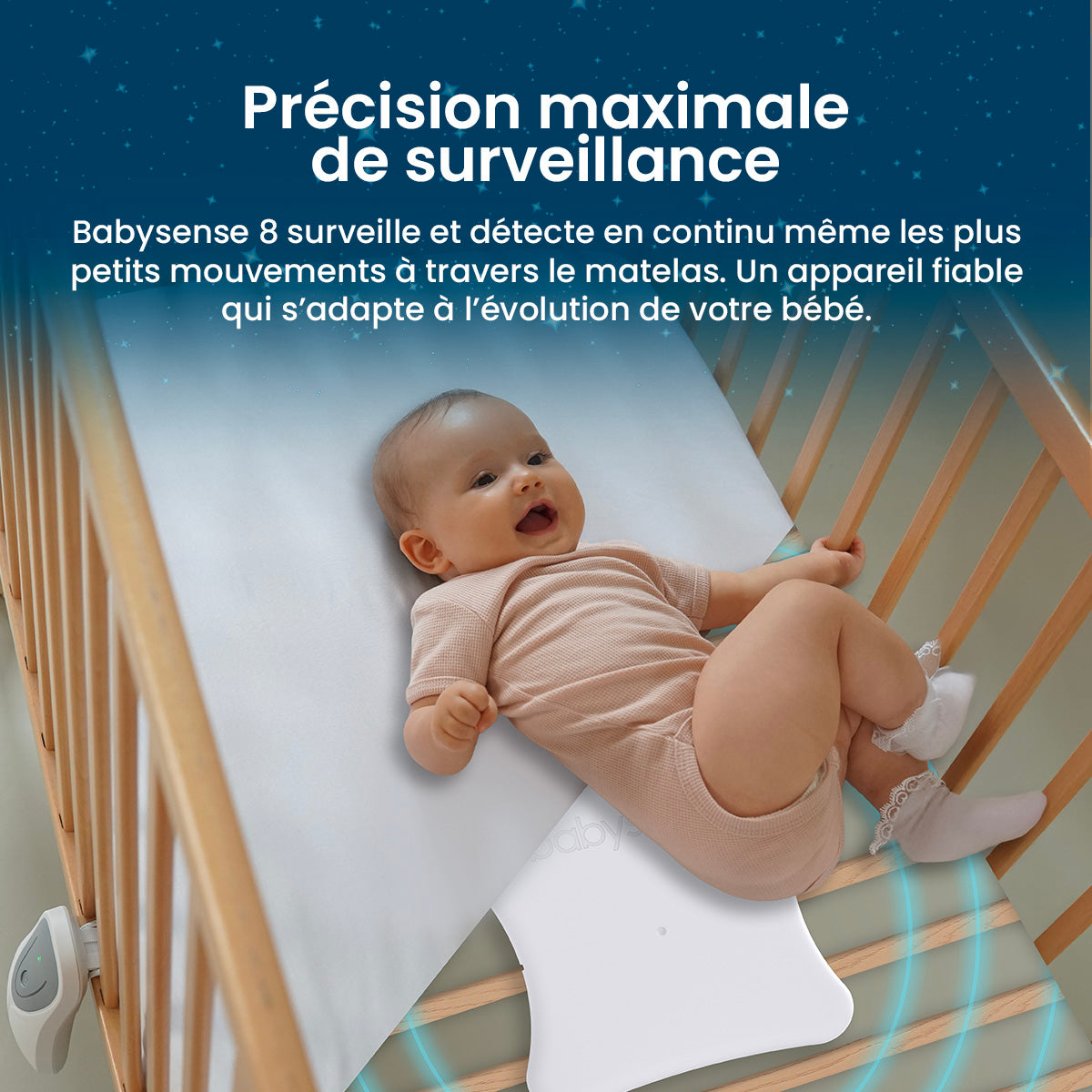 - Précision maximale de surveillance : Deux capteurs sensibles couvrent toute la zone du lit ou du berceau.