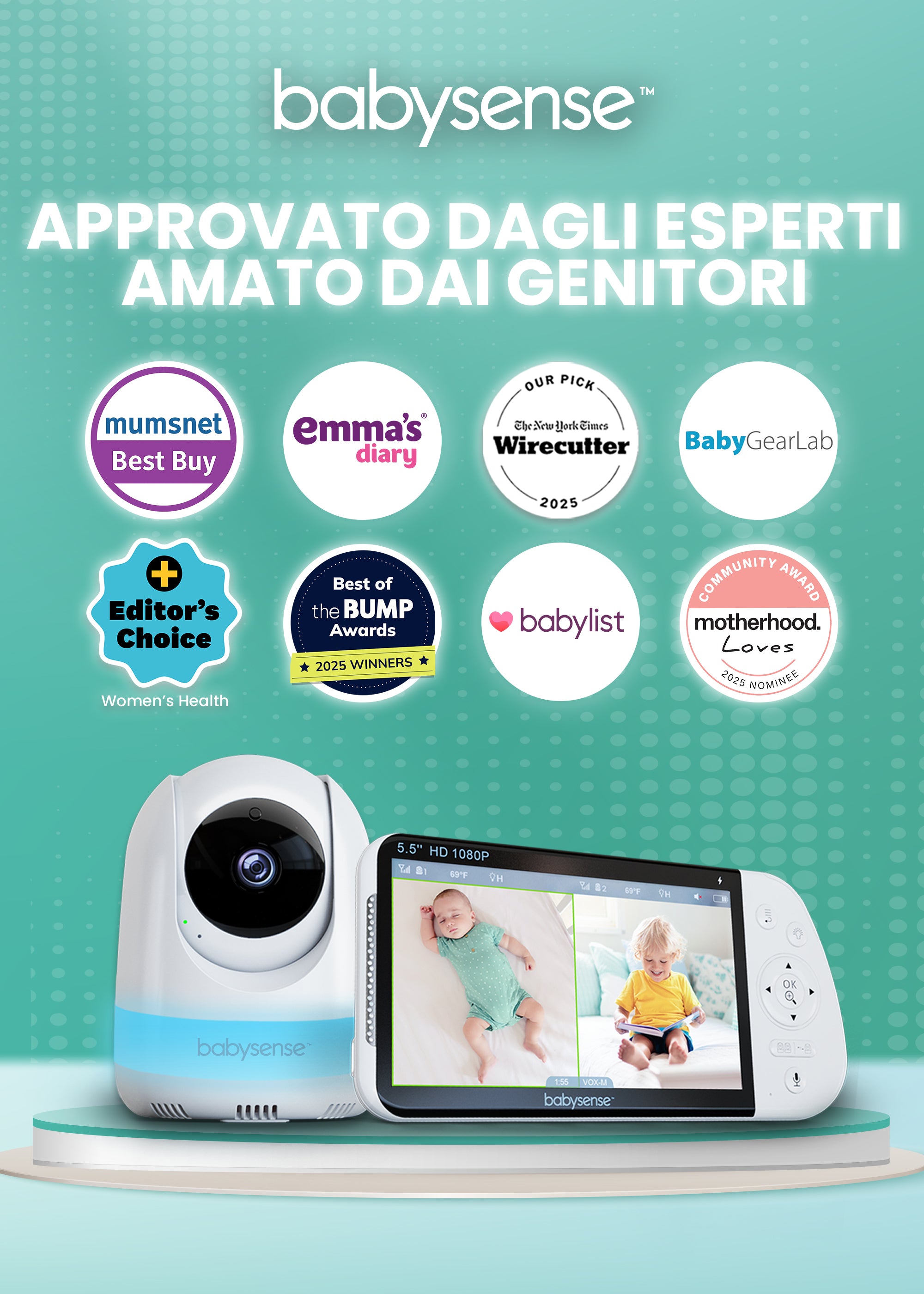Grazie all’alta qualità, allo schermo video in alta definizione e alla possibilità di collegare fino a quattro telecamere, abbiamo scelto il Babysense 5,5” 1080p Full HD con schermo diviso come il migliore baby monitor nella nostra classifica.