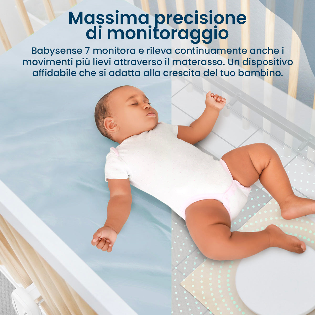 Il monitoraggio totalmente sicuro sotto il materasso mantiene il tuo bambino libero da scomodi gadget e cavi indossabili