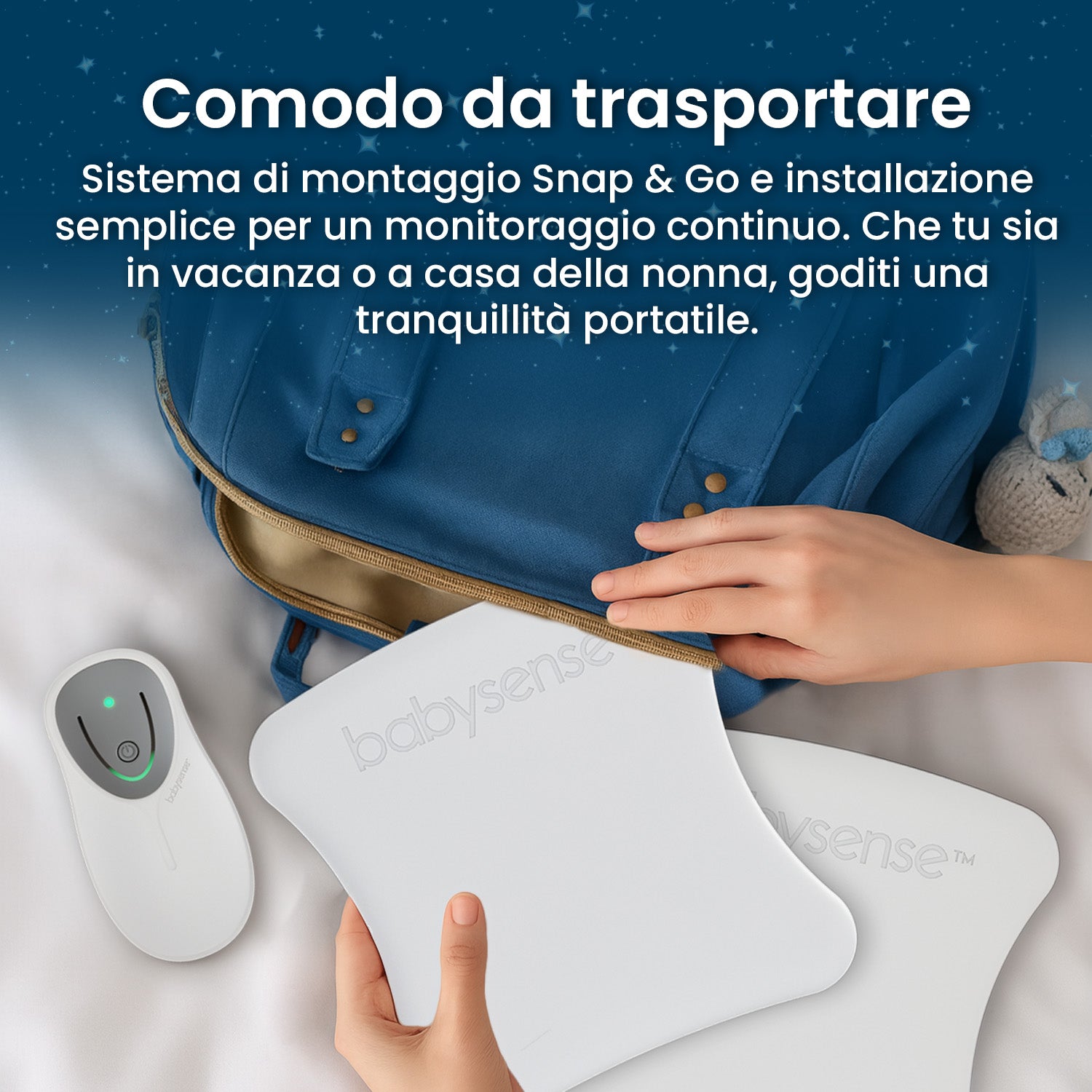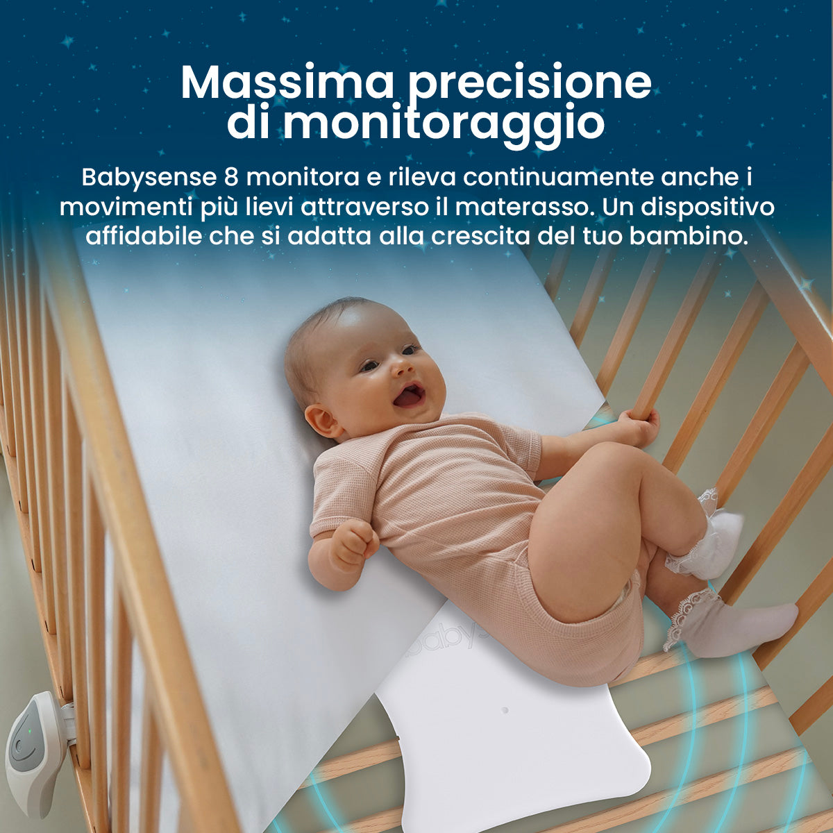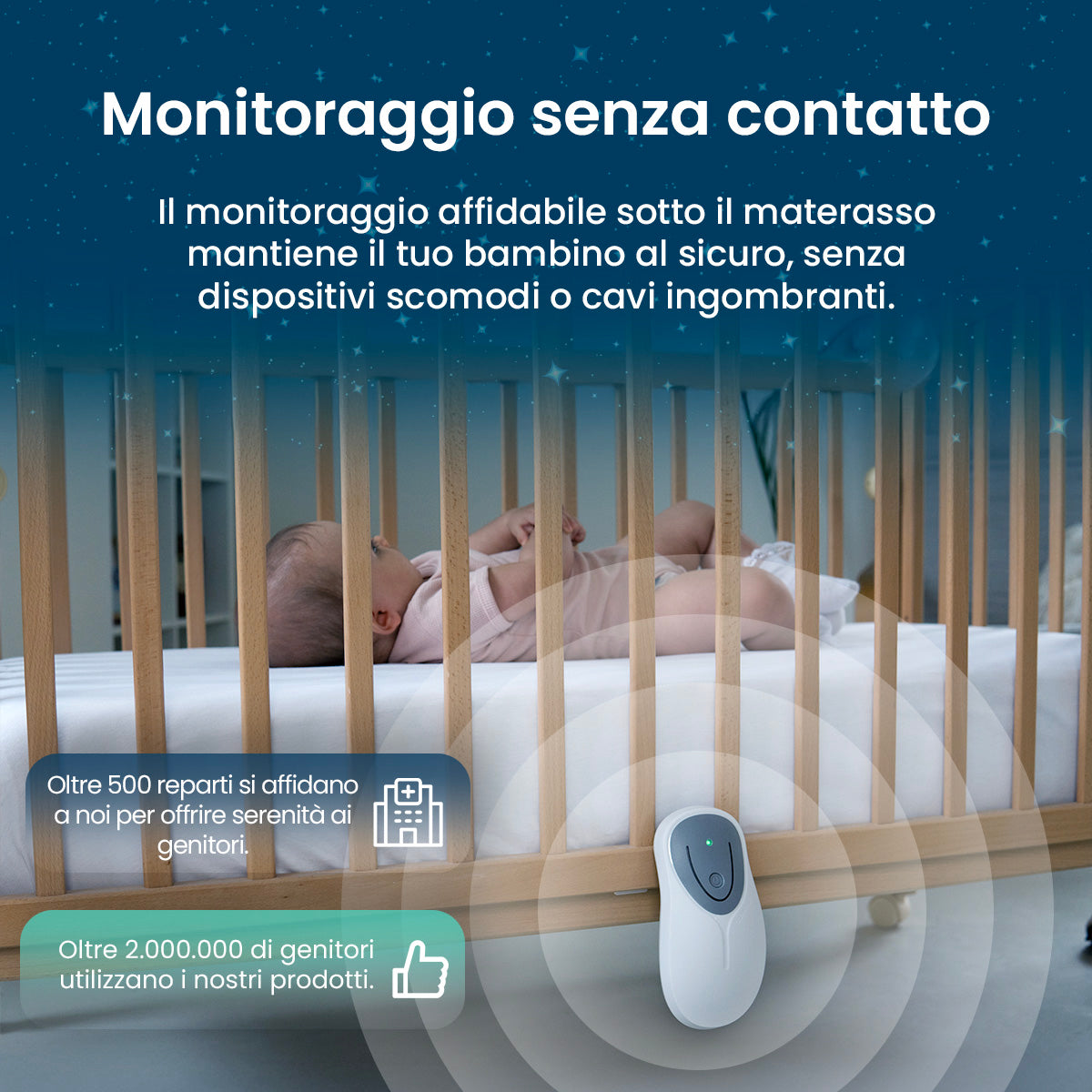 Il monitoraggio totalmente sicuro sotto il materasso mantiene il tuo bambino libero da scomodi gadget e cavi indossabili