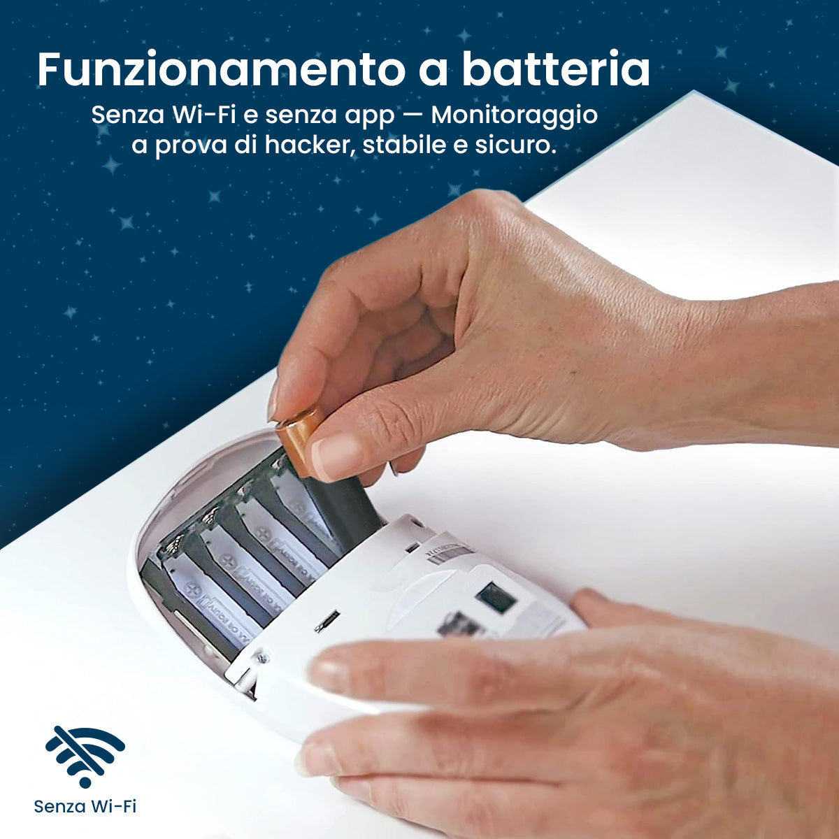 Il monitor è intuitivo, con una semplice installazione una tantum, attivazione con un solo pulsante ed è alimentato a batteria.