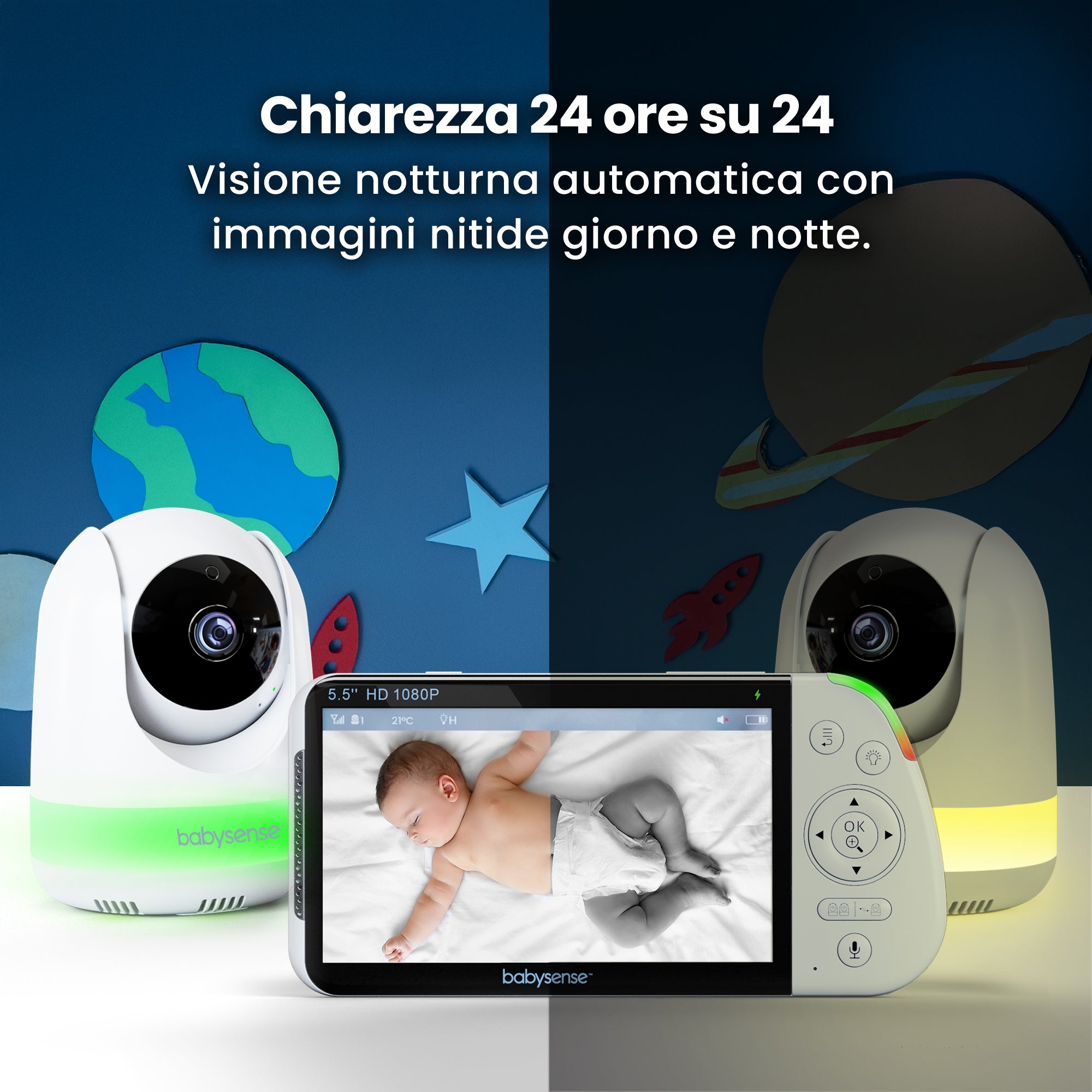 Visioni chiare, notti tranquille: il miglior baby monitor con telecamera di Babysense, con suoni di rumore bianco e funzionalità di luce!