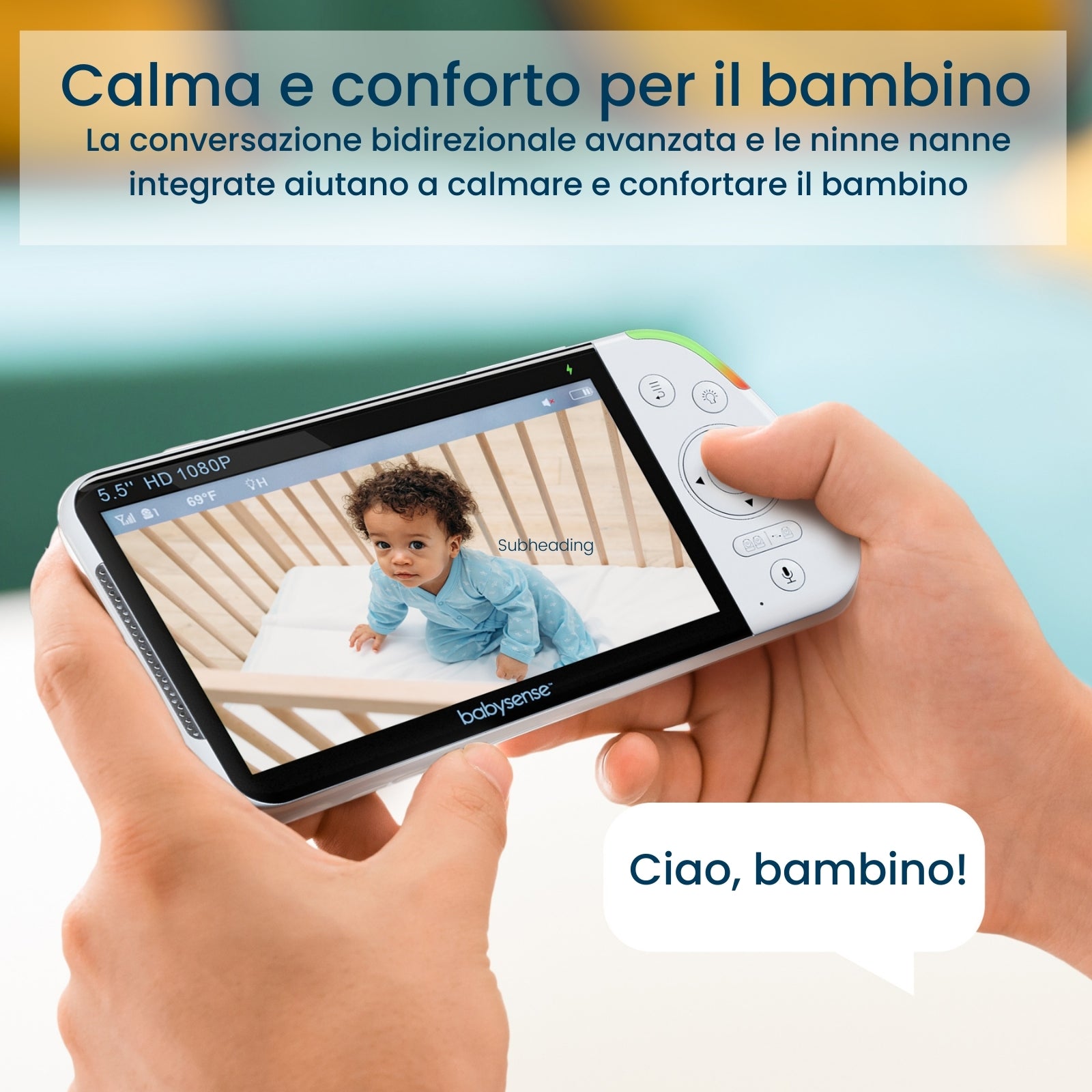 - Audio bidirezionale: Parla e consola il tuo bambino da qualsiasi luogo.