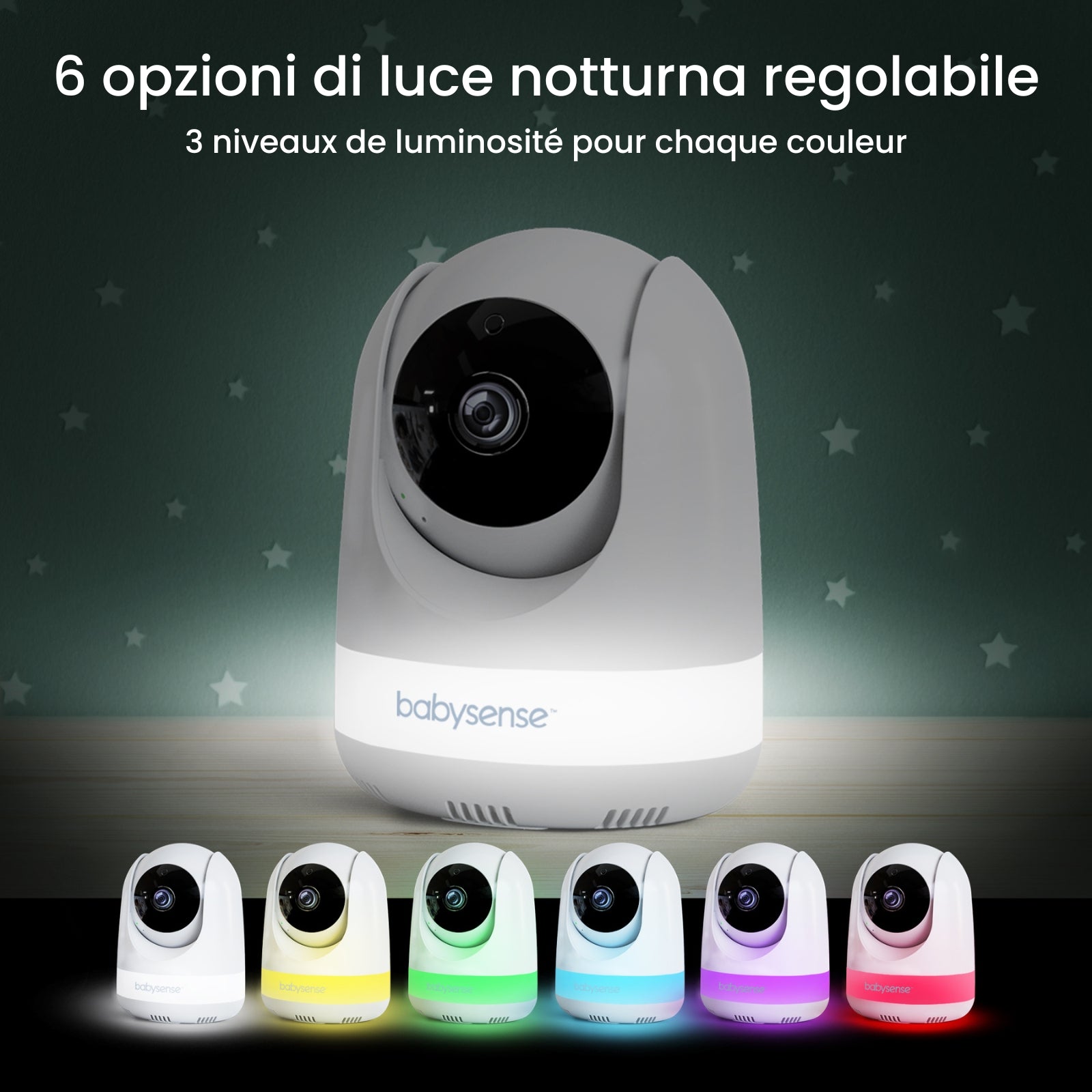 - Telecamere con luce notturna RGB a 6 colori: Personalizza un ambiente rilassante con sei colori di luce notturna per aiutare il tuo bambino a dormire serenamente.