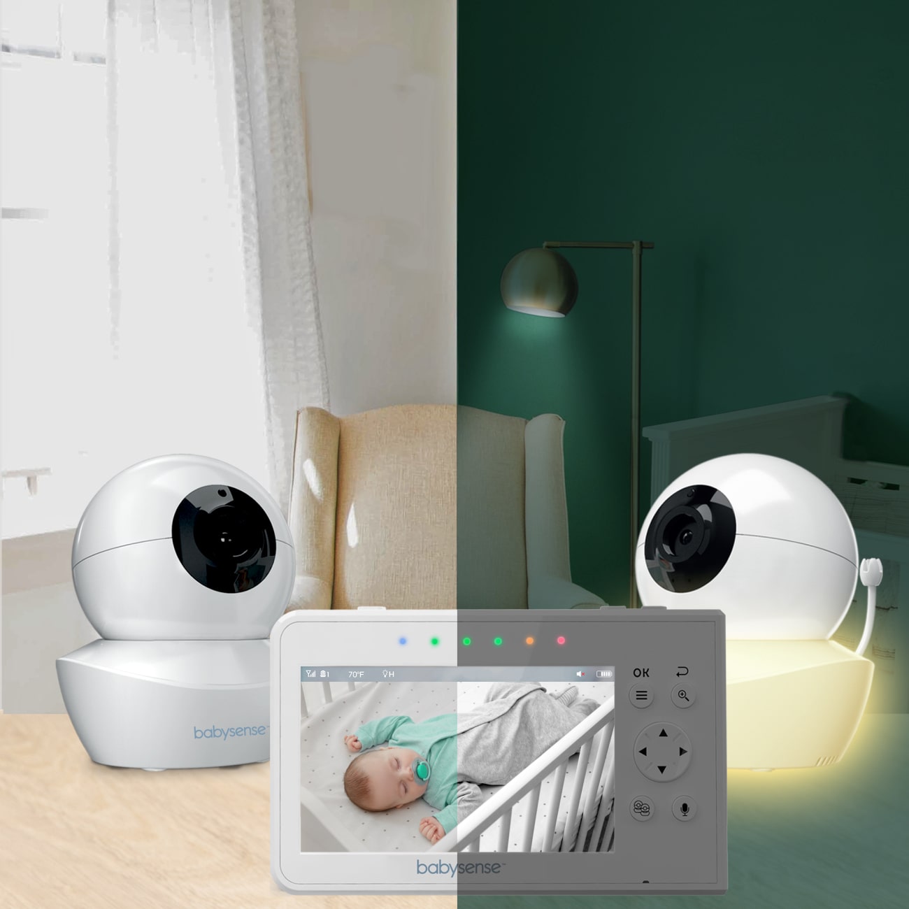 Babysense V43: Video Baby Monitor with 2 Cameras, Non Wifi, Split Screen & Night Light Machine